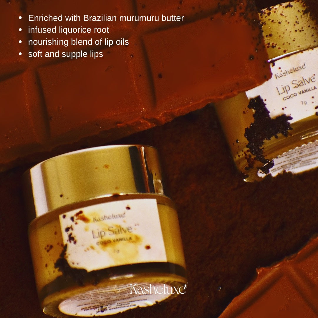 Say hello to your lips’ new favorite treat—Kashéluxe Coco Vanilla Lip Salve. This ultra-nourishing balm combines Brazilian Murumuru butter, castor oil, and almond oil with the decadent warmth of vanilla and chocolate flavour oils to deliver intense hydration and a luxurious sensory experience.